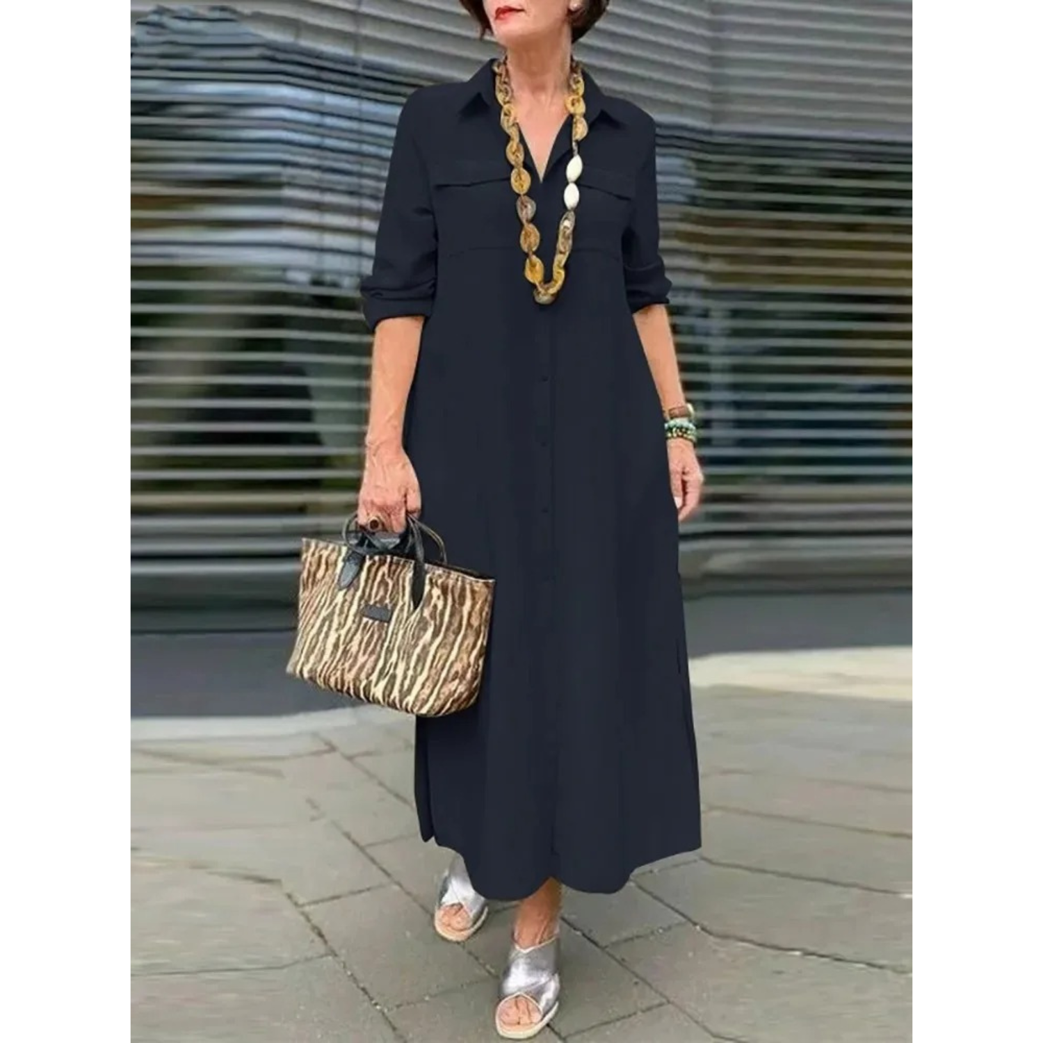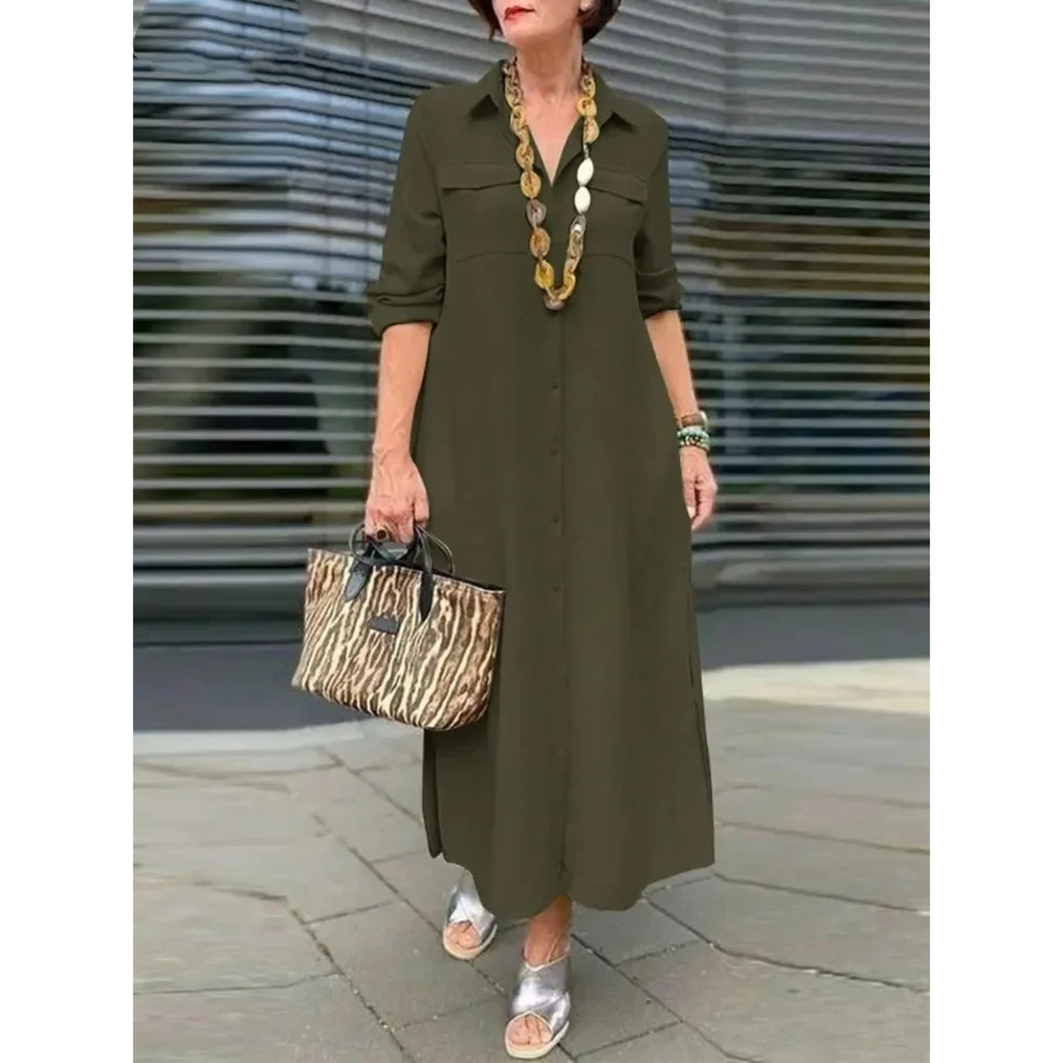 Elegant V-Neck Shirt Dress – Timeless Style for Women