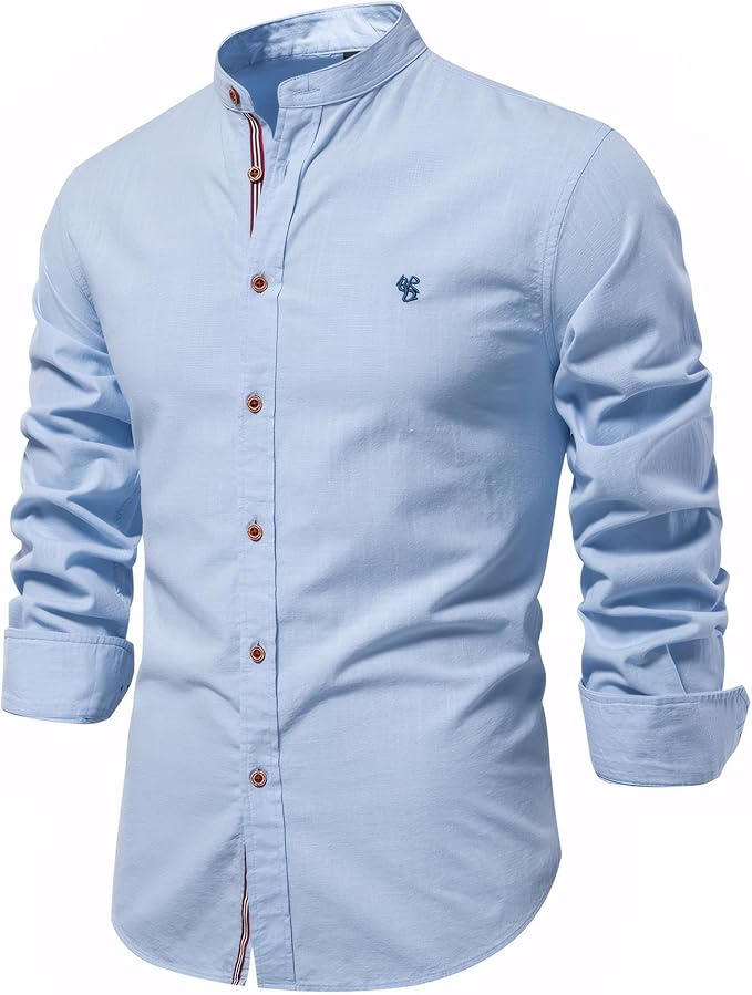 Effortlessly elevate your outfit with this stylish men's shirt featuring a stand-up collar. The slim fit and refined details create a polished look, perfect for both casual and formal occasions.